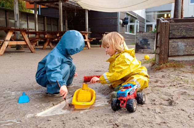 De fleste dage spiser vi formiddagsfrugt udenfor, hvorefter vi starter med udendørsaktivitet, som krible-krable dyr, fælleslege, forskellige kreative ting. Vi leger meget med vand, når vejret tillader det.