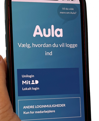 Alle børn og forældre er ved barnets indmeldelse oprettet i Aula. Der er vigtigt, at I har logget jer ind Aula inden barnets start, eller som minimum på barnets første dag.